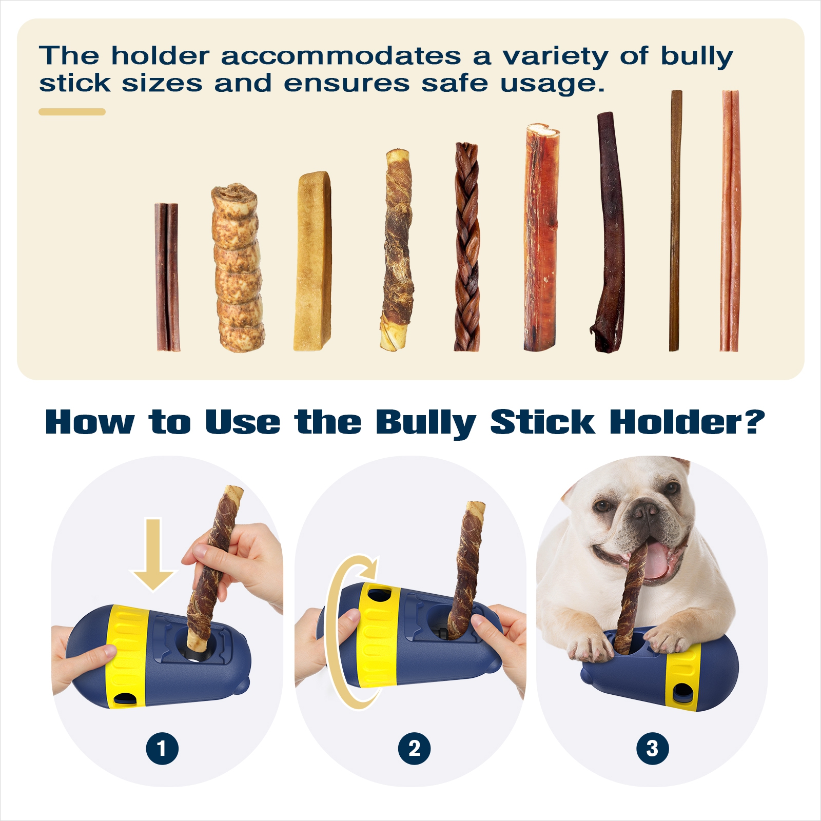 1 [Perfect Dog Treat Toy]This is a multifunctional dog toy that serves as a bully stick holder, preventing choking and blockage risks during chewing sessions. It also functions as a pet food dispensing toy, releasing food as dogs push or move the toy during play;