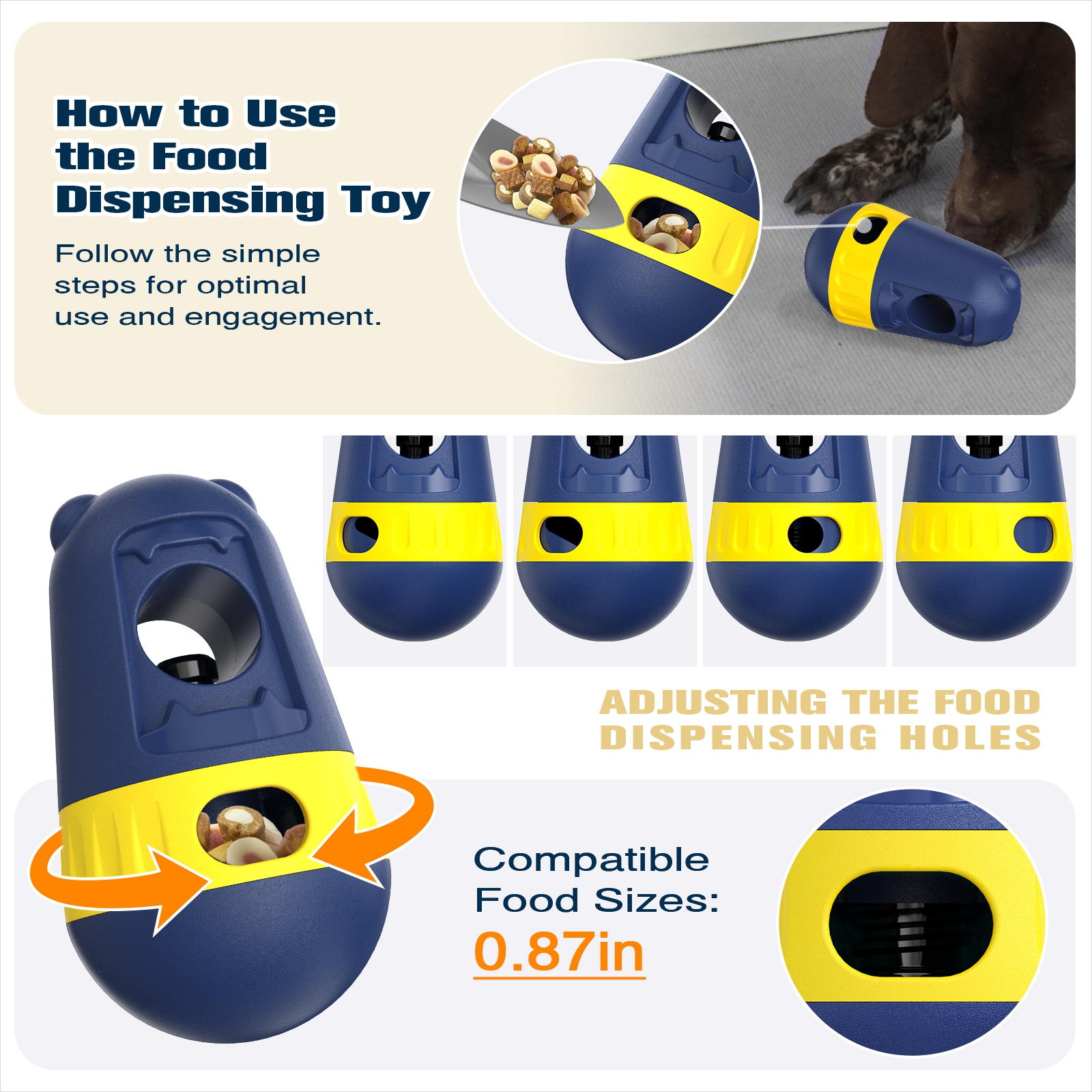 4 [Food Dispensing Toy] The toy can serve as a food dispenser for dogs. When the dog pushes the toy, it moves within a designated area, allowing the dog to continuously chase and play with it. During movement, the toy releases food, providing an engaging and rewarding experience for your pet;