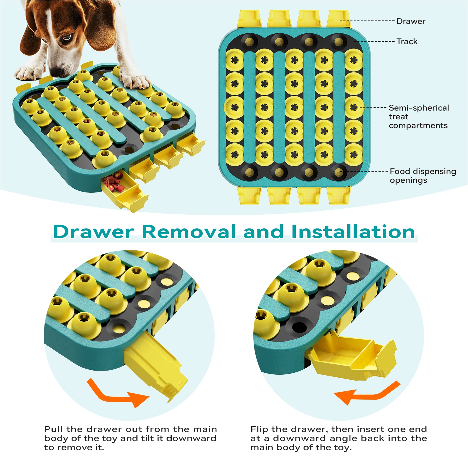 1 [Advanced Dog Puzzle Toy] This innovative puzzle toy combines four levels of difficulty into one product. Your dog will work their way up from Level 1 to Level 4, gradually increasing the challenge. Starting simple and progressing to complex, this toy acts as a “game console” for your dog, keeping them mentally engaged and entertained. It’s the perfect way to effectively stimulate your dog’s intelligence and provide hours of enriching fun;