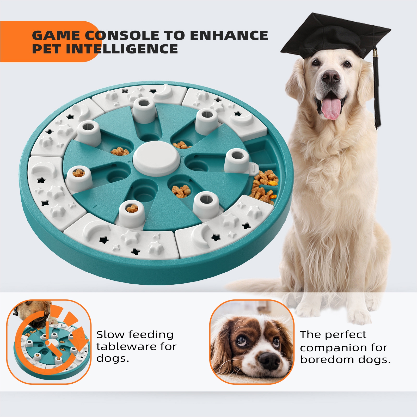 1 [With American localbrand and appearance patent] This is apuzzle toy that can enhance dogs IQ and promote their brain power. It is also a training toy that can keep dogs more stable in their mood and personality. With 2 difficulty levels integrated in 1 toy, it allows your dog to play from level 1 to level 2. Gradually improve the dog's IQ according to actual situation. Suitable for dogs that have not been intellectually trained or dogs that have received primary intelligence training;