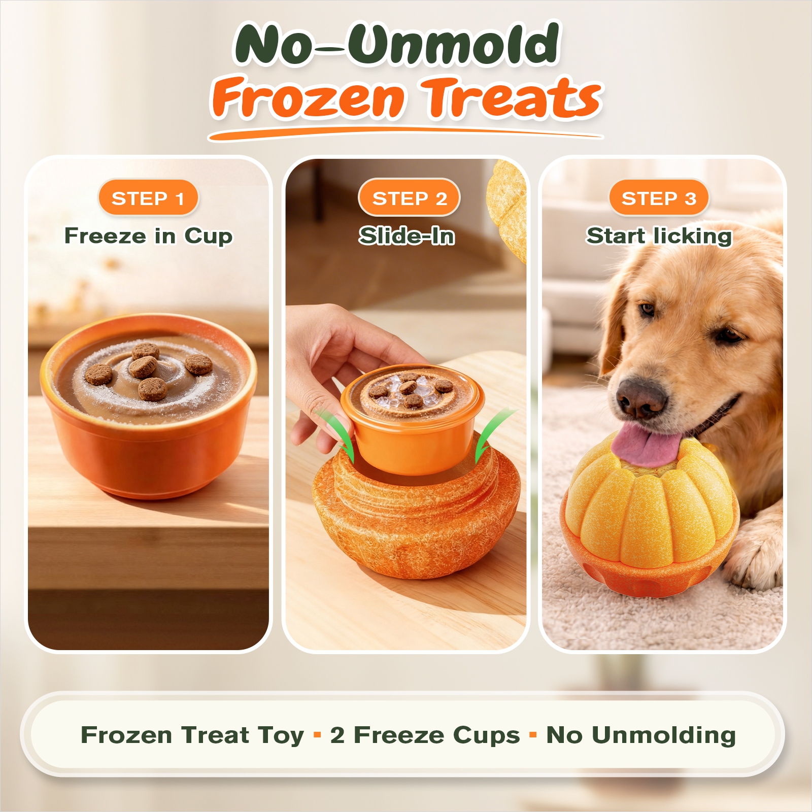 A: From KADTC (American pet brand) with a U.S.-patented concept, it’s Chew + Freeze & Lick + Roll-to-Dispense in one toy.