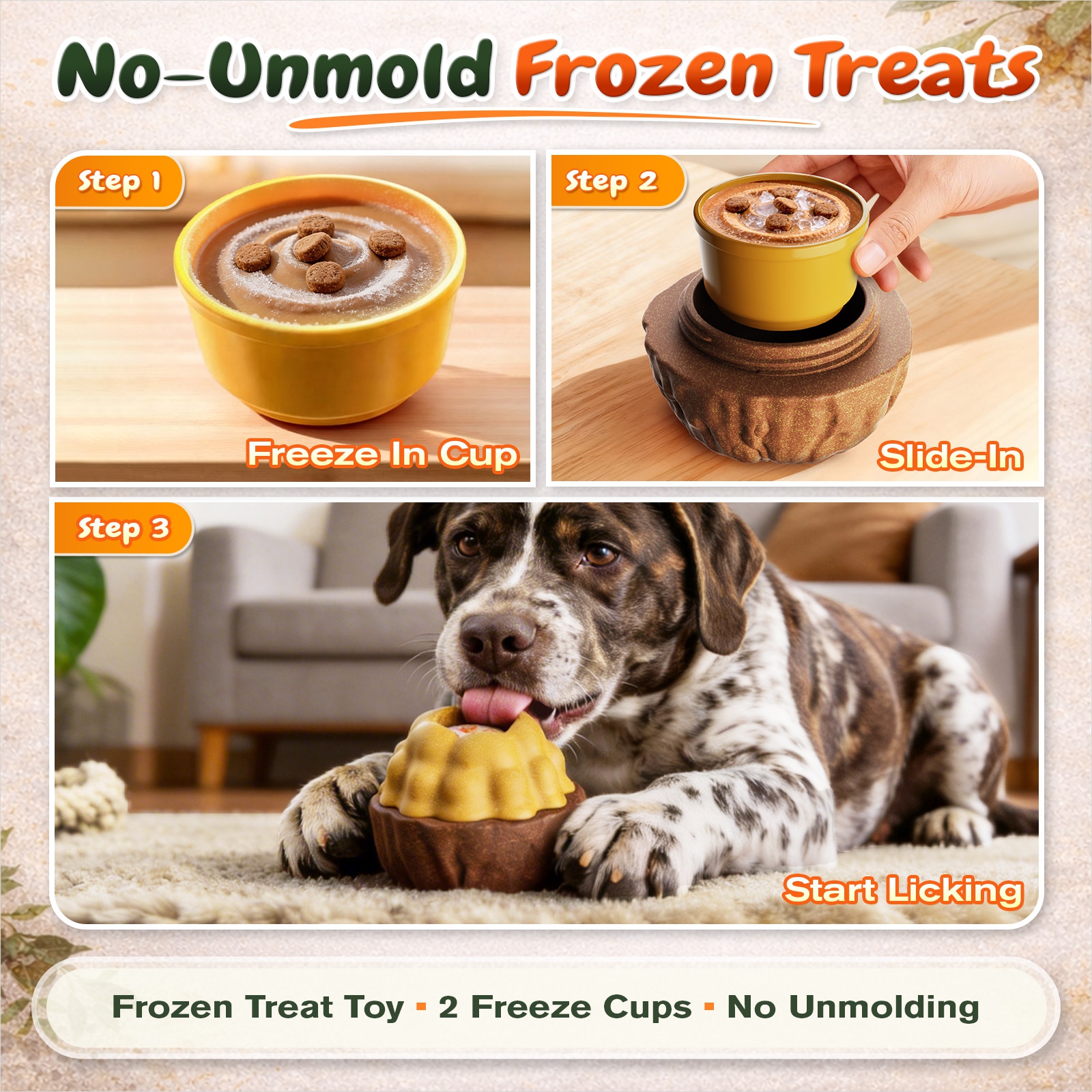 No. Fill the included freeze-and-serve cup with yogurt, peanut butter, puree, or broth, freeze, then slide it straight in so your dog can start licking right away—perfect for hot days or when you need longer indoor engagement.