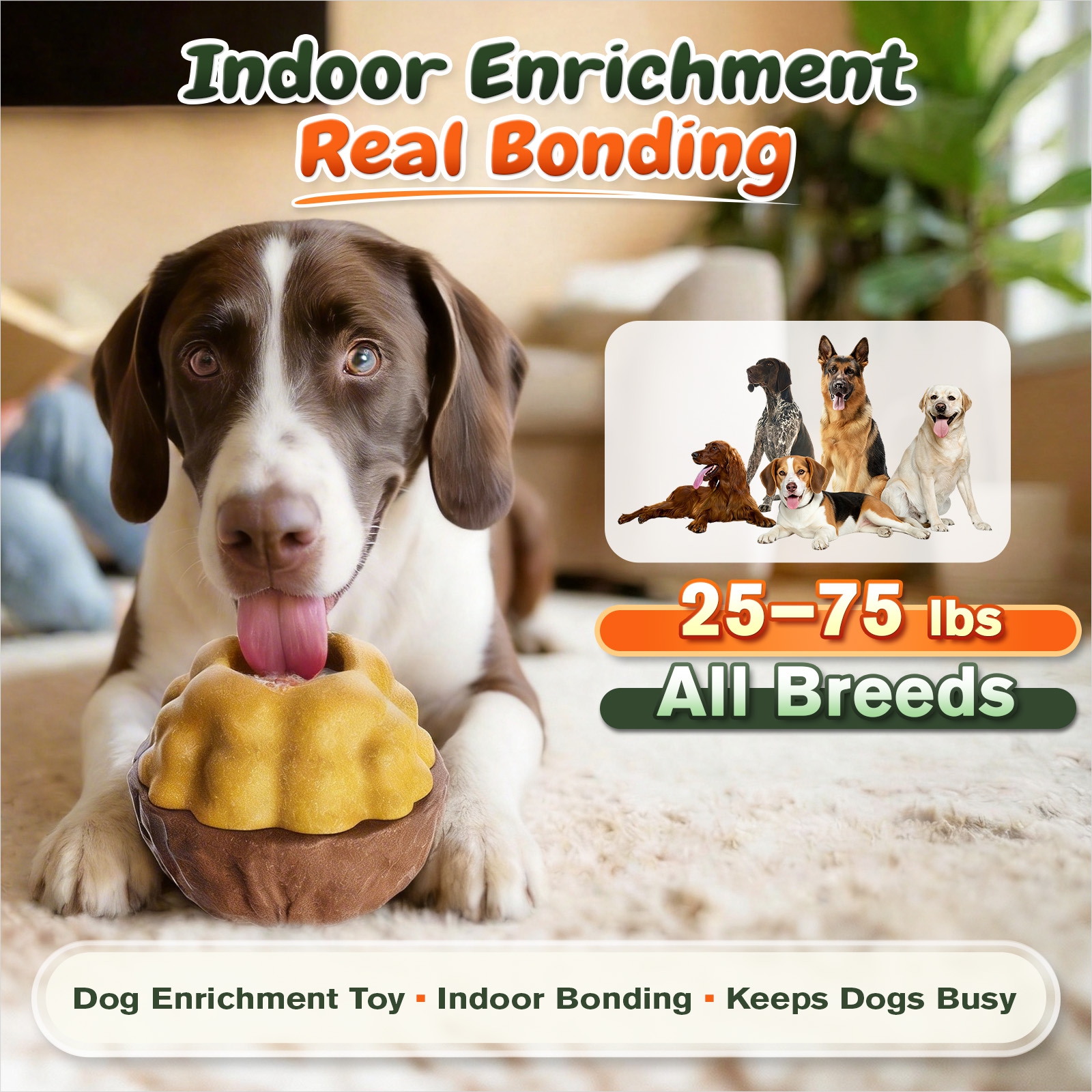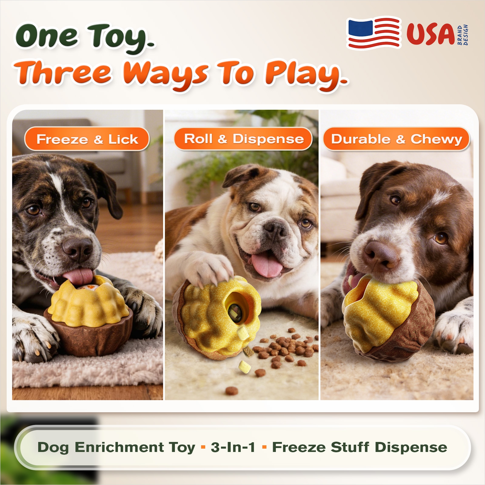 KADTC ALL IN ONE 3 in 1 Dog Enrichment Toys - Fillable Freeze Treat Dispenser Chew Toy Walnut
