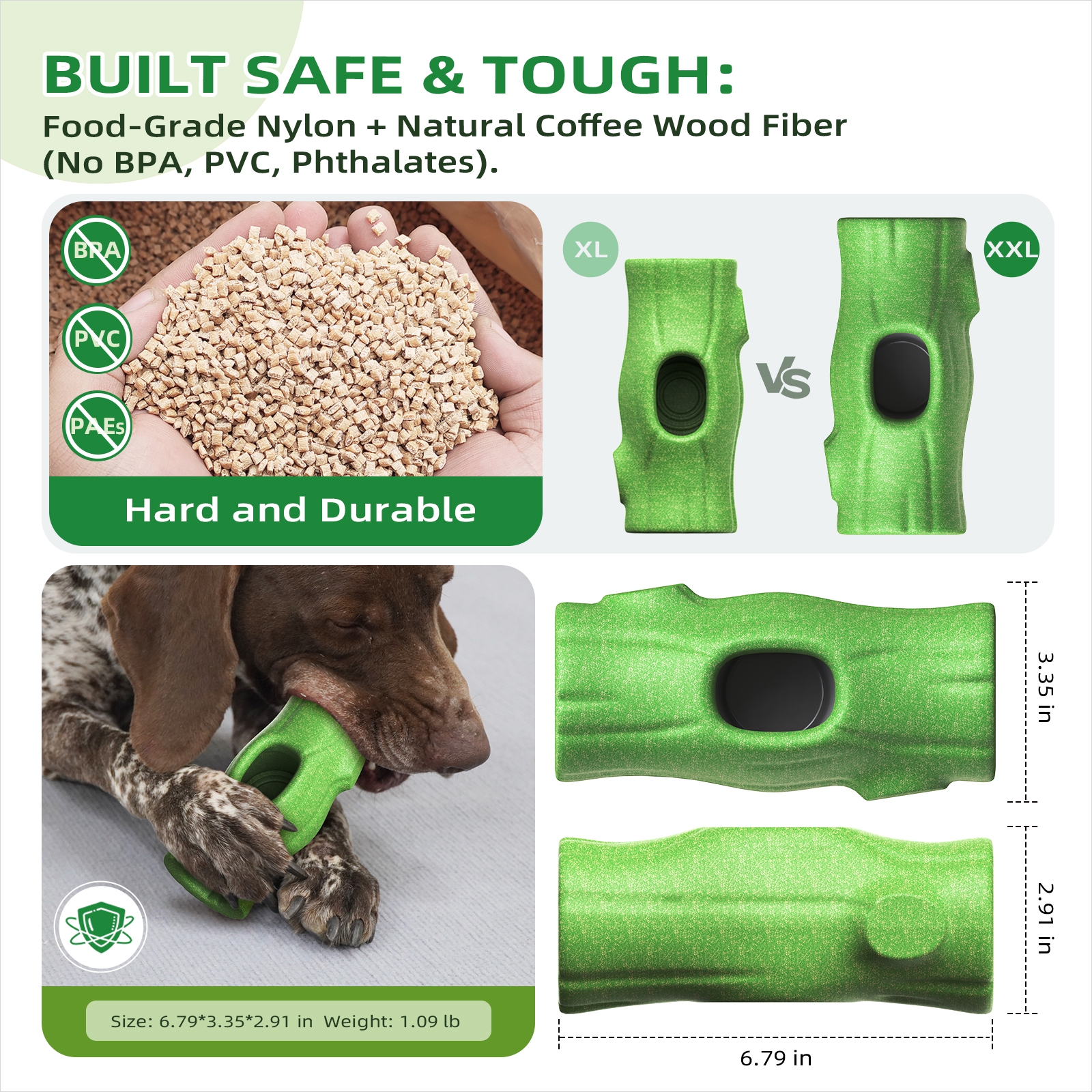 2 The toy is made from food-grade nylon and coffee wood fiber, using innovative production techniques to ensure safety and health. It is highly chew-resistant and free from bisphenol A, PVC, and phthalates, fully protecting your dog’s health. Both the raw materials and the product are very safe, so you can confidently let your dog use it;