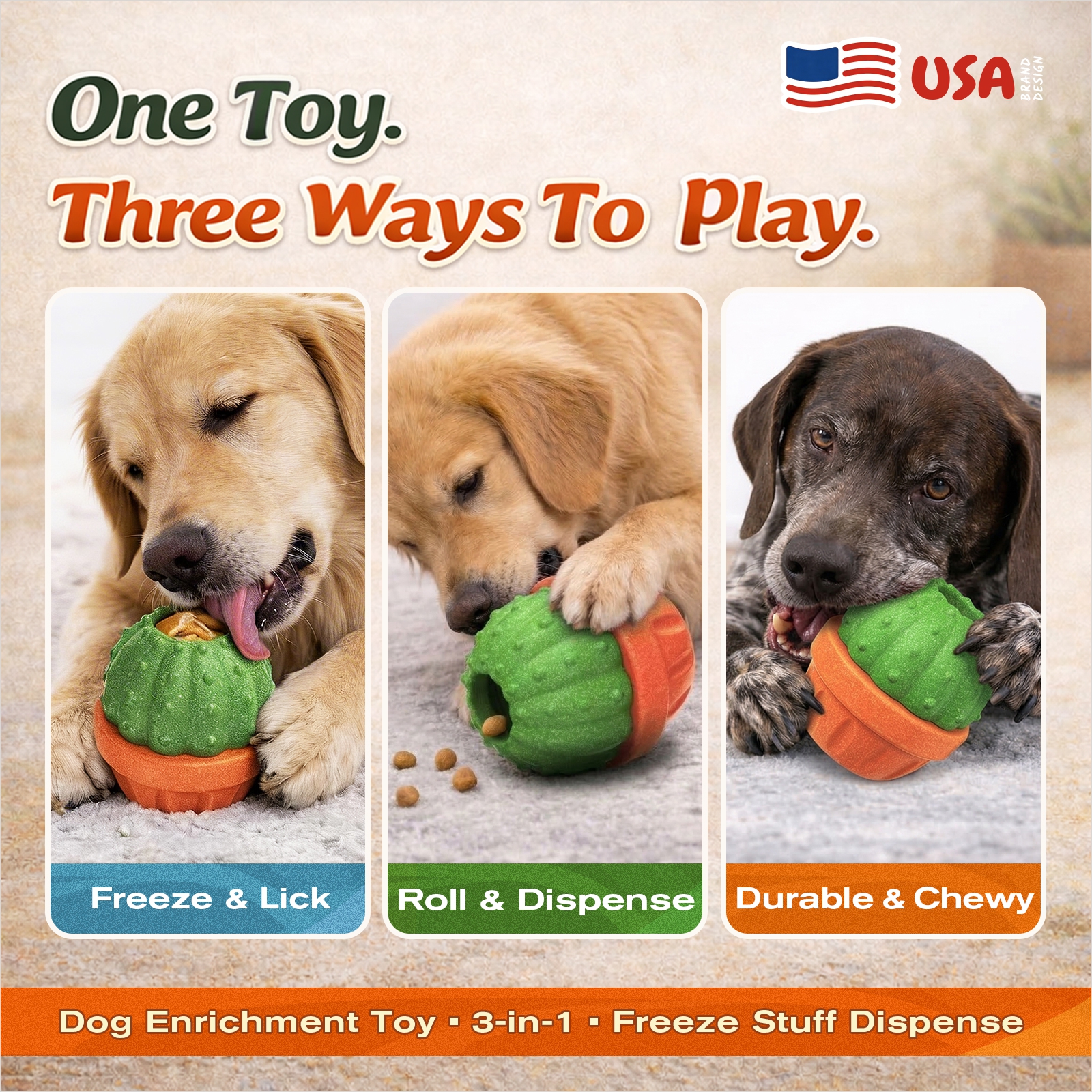KADTC ALL IN ONE 3 in 1 Dog Enrichment Toys - Fillable Freeze Treat Dispenser Chew Toy Cactus