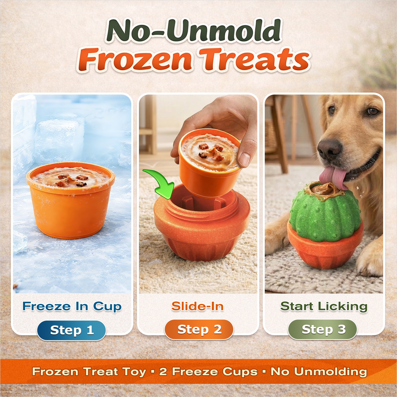 No. Fill the included freeze-and-serve cup with yogurt, peanut butter, puree, or broth, freeze, then slide it straight in so your dog can start licking right away—perfect for hot days or when you need longer indoor engagement.