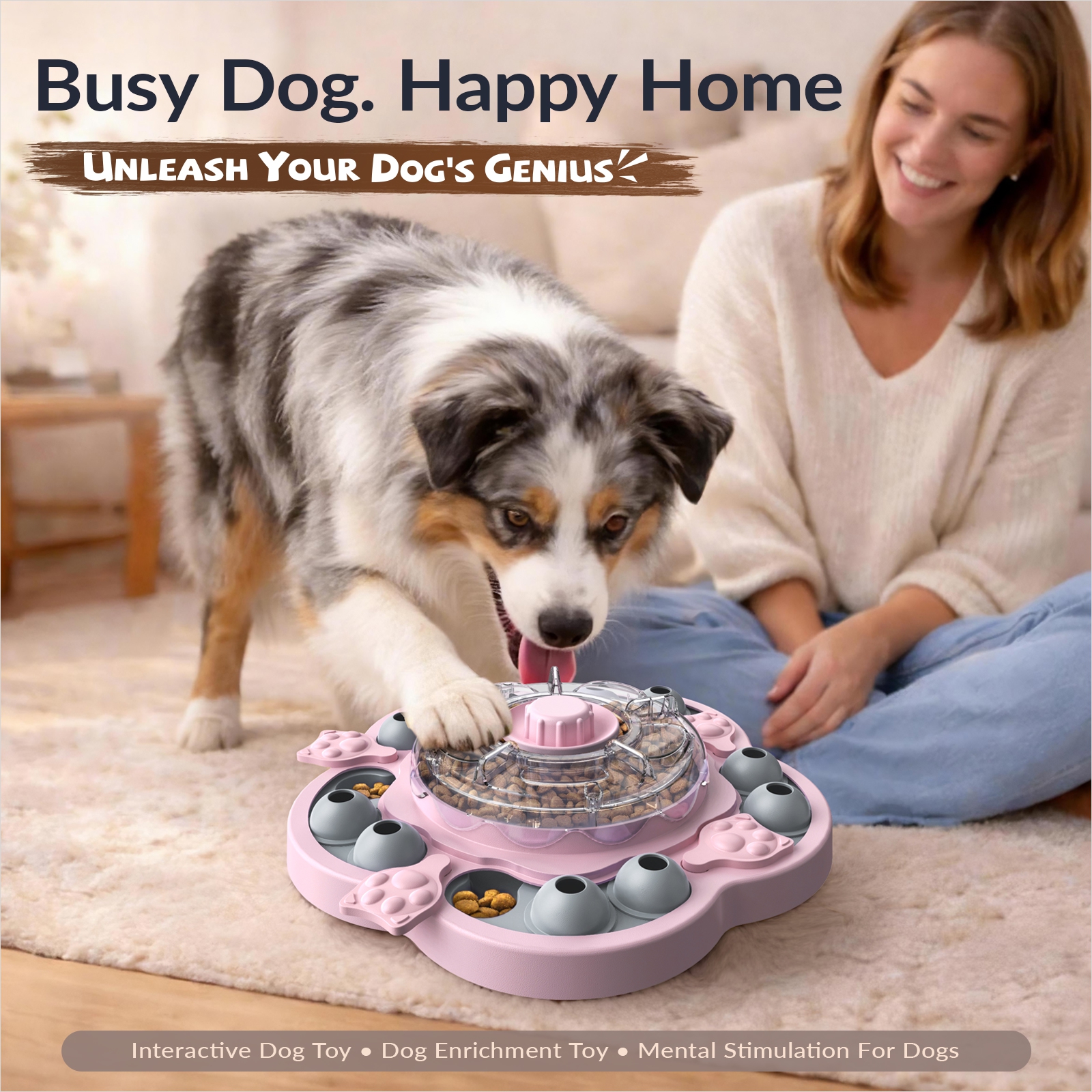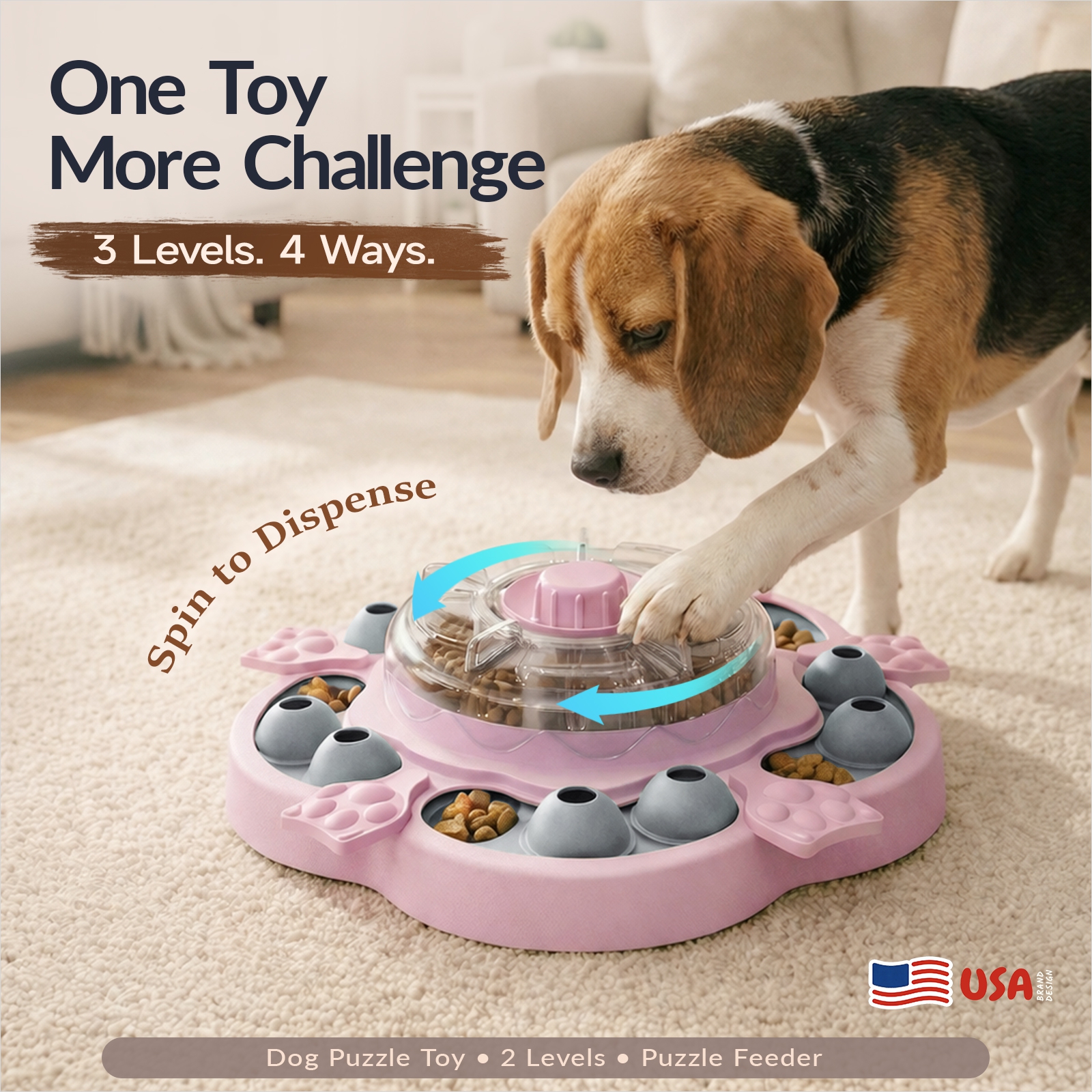 A: Start easy, use smellier rewards, and let your dog see where the food goes. Guide the first few spins or slides so they get quick wins, then increase the challenge once they understand the game.