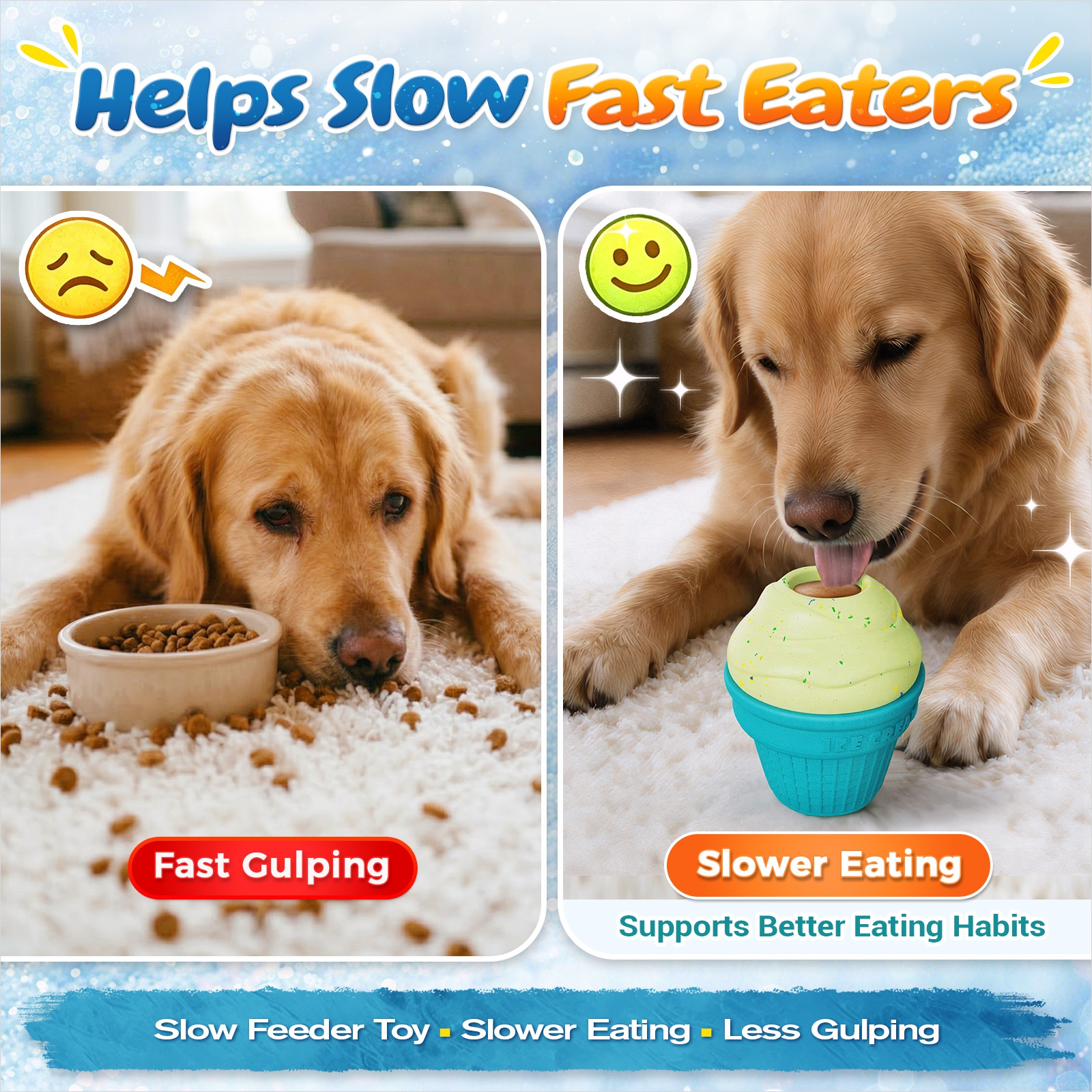 No. Fill the included freeze-and-serve cup with yogurt, peanut butter, puree, or broth, freeze, then slide it straight in so your dog can start licking right away—perfect for hot days or when you need longer indoor engagement.