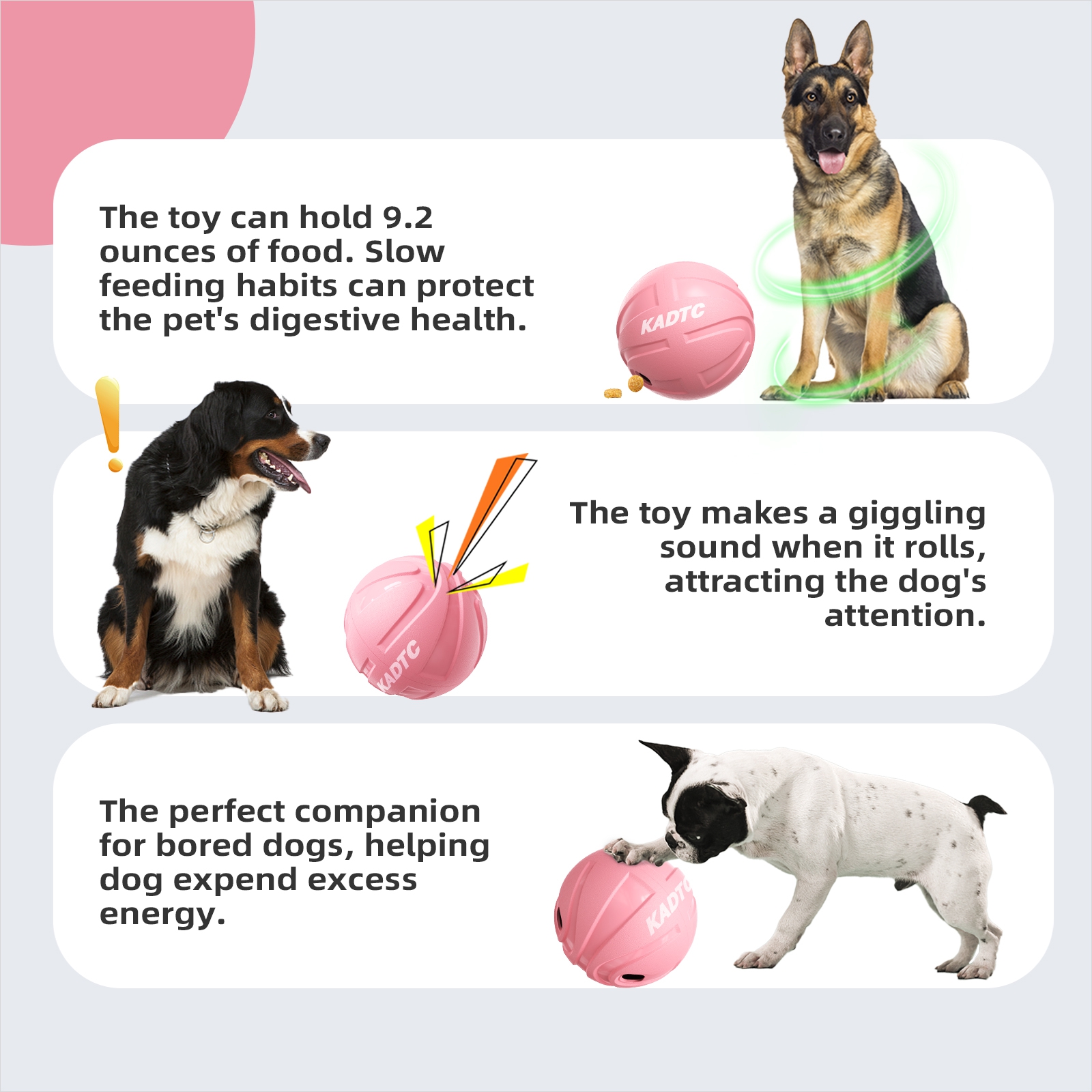 [Playful Giggling Sounds]Batteries? Nope! This clever ball has a built-in sound maker that lets out funny "giggle" noises whenever your dog rolls or shakes it. Those silly sounds are irresistibly amusing to dogs, grabbing their attention and encouraging them to play again and again. It's like your pup has a goofy friend inside the ball cheering them on! And no worries – the sound mechanism is securely built-in and super durable, so it won't break even after countless play sessions. The giggles just keep on coming, keeping your dog entertained and happy