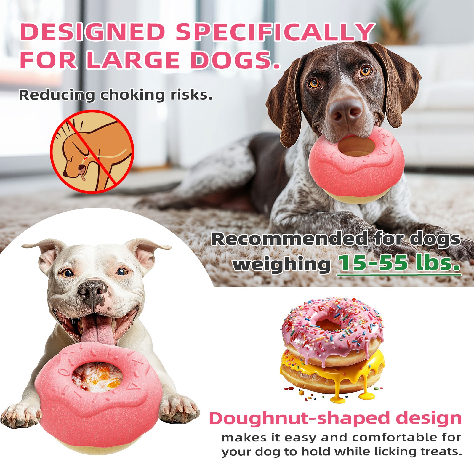 3 [Designed Specifically for Dogs' Natural Habits] The toy features a Doughnut-inspired design, allowing dogs to comfortably use it. When licking frozen food blocks or peanut butter applied to the grooves, dogs can press down on the sturdy base with their paws for a more stable and enjoyable experience;