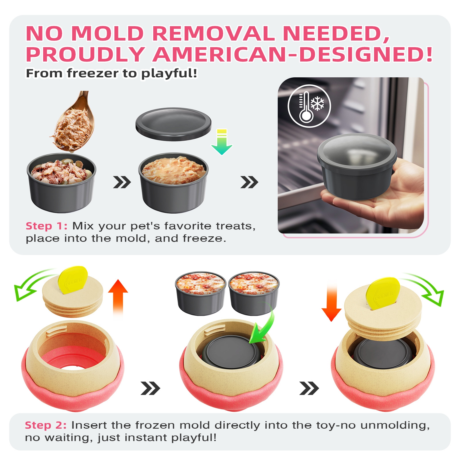 6 [Easy to Set Up & Use ] When used as a frozen treat holder, simply use a plastic tool to open the bottom cover of the toy. Insert the pre-frozen food compartments into the designated slot, then securely reattach the bottom cover to the main body of the toy. Installation is quick and straightforward;