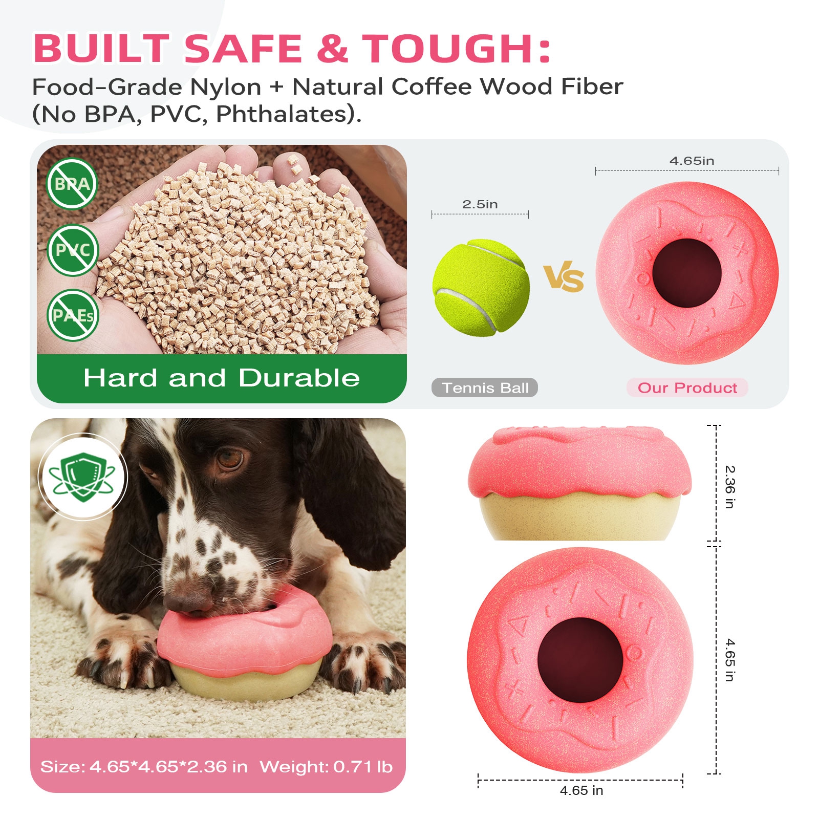 2 [Safe Design & Materials] Crafted with your pet’s health in mind, this toy is made from premium food-grade nylon and natural coffee wood fiber. Our innovative manufacturing process ensures a tough, chew-resistant build that’s completely pet-safe – absolutely no BPA, PVC, or phthalates. You can trust that every lick and chew is safe, allowing your pup to play and gnaw to their heart’s content. From raw materials to finished product, every aspect is tested for safety, giving you peace of mind while your dog plays;