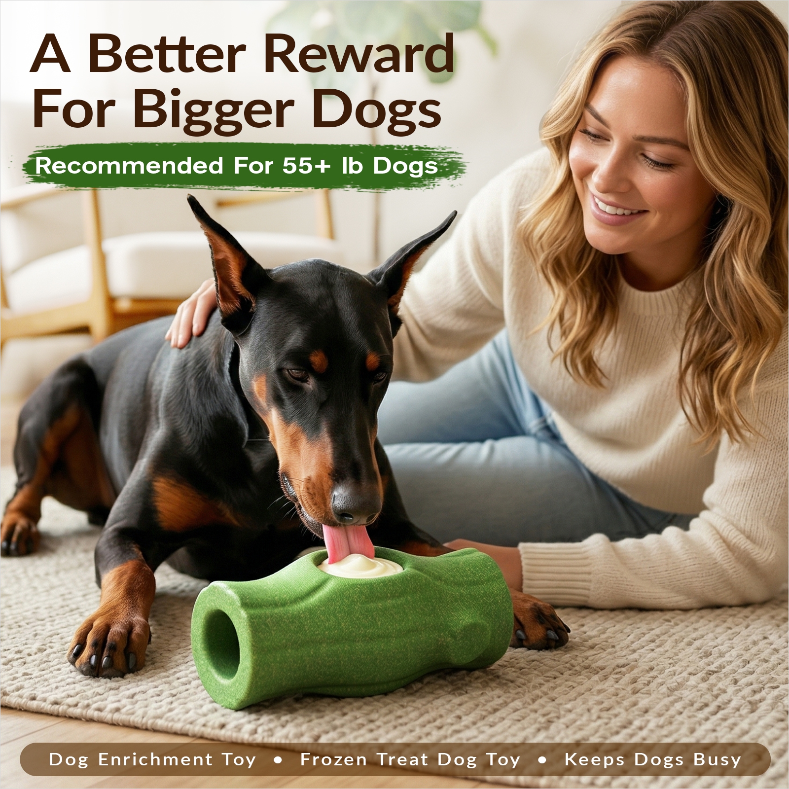 A: From KADTC, an American brand with a patented design, this is an XXL stump-shaped dog enrichment toy that turns frozen treats into longer-lasting lick-and-chew fun. It’s great for dogs that need something engaging to focus on at home, in a crate, or in a kennel.